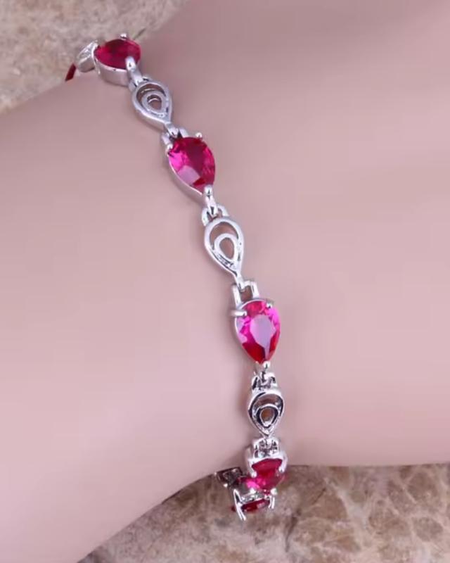 Тонкий браслет з фіанітами з рубінами і ланцюжком подовжувачем, з пробою на застібці 925.Під браслет є кільця і сережки,колір на соці більш червоний