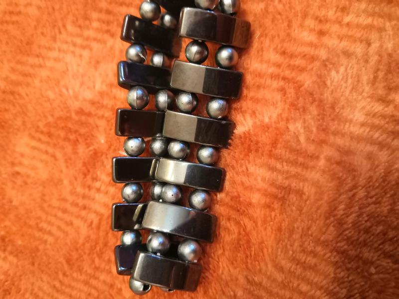 На резинке, фото на руке с обхватом 16,5 см, без растяжения резины. легко снять/надеть Мелкие бусинки - пластик