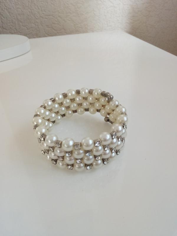 Браслет пружина из жемчуга и страз