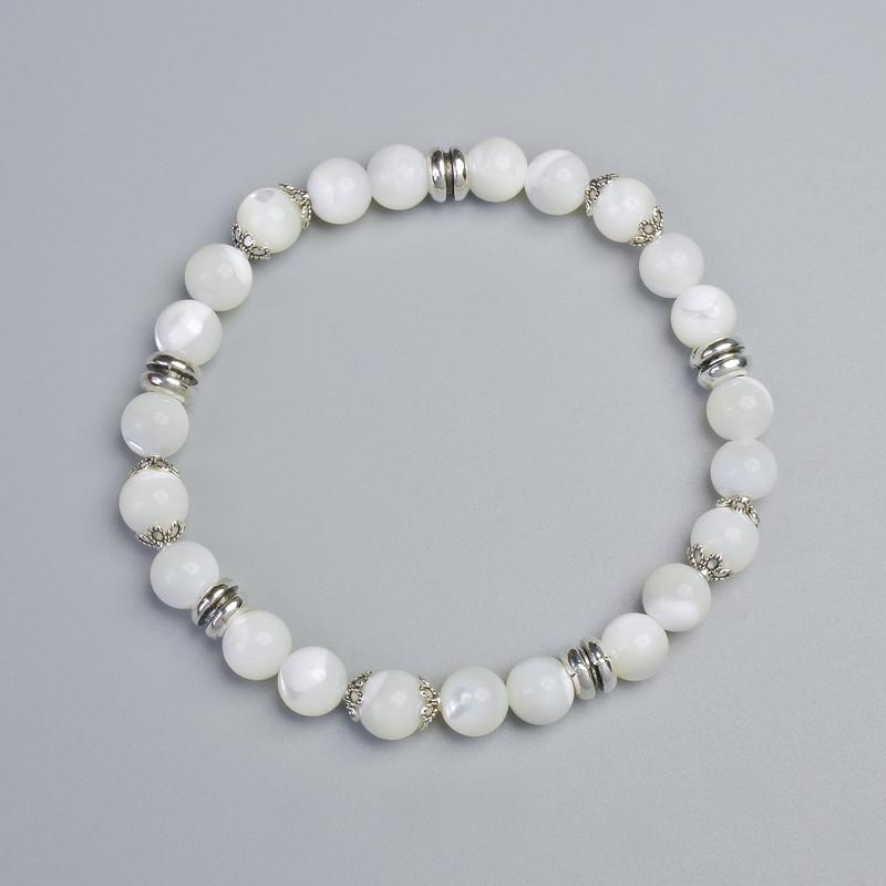 Браслет перламутр гладка кулька з металевими вставками + стрейч