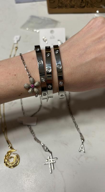 Жіночий чоловічий металевий браслет в стилі cartier з вставками камінці ,на застібці