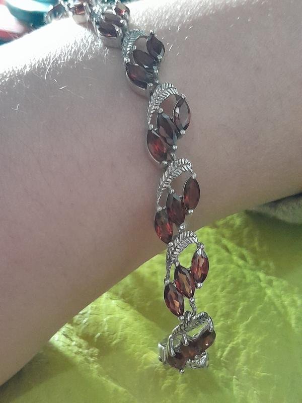 Браслет серебро 925* с натуральным гранатом пироп позолота белым золотом