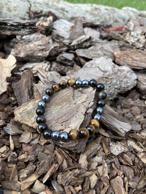 Браслет захисний чоловічий , жіночий 8 мм гематит тигрове око обсидіан
