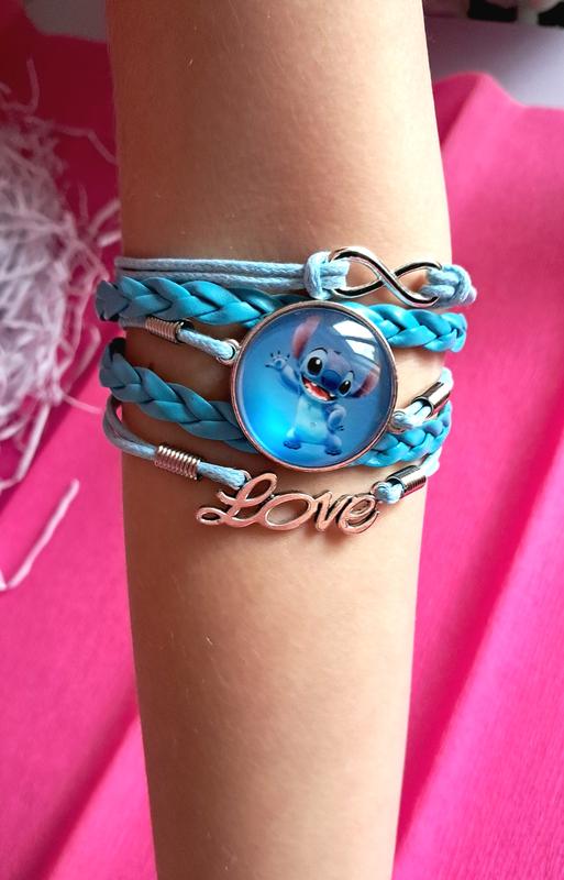 Браслет із Стічем "Love" – блакитний, плетений Стильний браслет у яскраво-блакитному кольорі з зображенням улюбленого героя Стіча — ідеальний аксесуар для фанатів Disney! Комбіноване плетіння з м’якого шнура і декоративний напис Love додають образу ніжності й оригінальності. Характеристики: Довжина: регулюється (застібка з подовжувачем) Матеріал: текстиль, металеві елементи Дизайн: зображення Стіча + напис Love Колір: блакитний Зручно сидить на зап’ясті, легкий та приємний у носінні Чудовий подарунок для дівчини, підлітка або фаната мультфільму "Ліло і Стіч"!