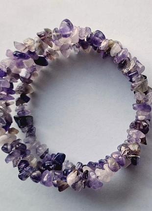 браслет із натурального аметисту, дрібна крихта 4-8 мм, на меморі дріт на 3 оберти, на об'єм 17-20 см, жорсткий, тримає форму, але за бажання можна злегка стиснути або розчавити дріт, фурнітура біжутерна срібляста 1 оберт/на застібці карабін або магніт/165 грн (до 20 см) 1,5 оберту / 235 грн (Ок 30 см) 2 оберти / 285 грн (Ок 40 см) 3 оберти /385 г (Ок 60 см)