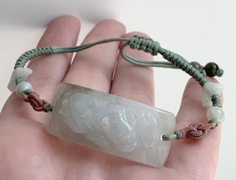 Вінтажний браслет з різного нефриту. Регулюється.