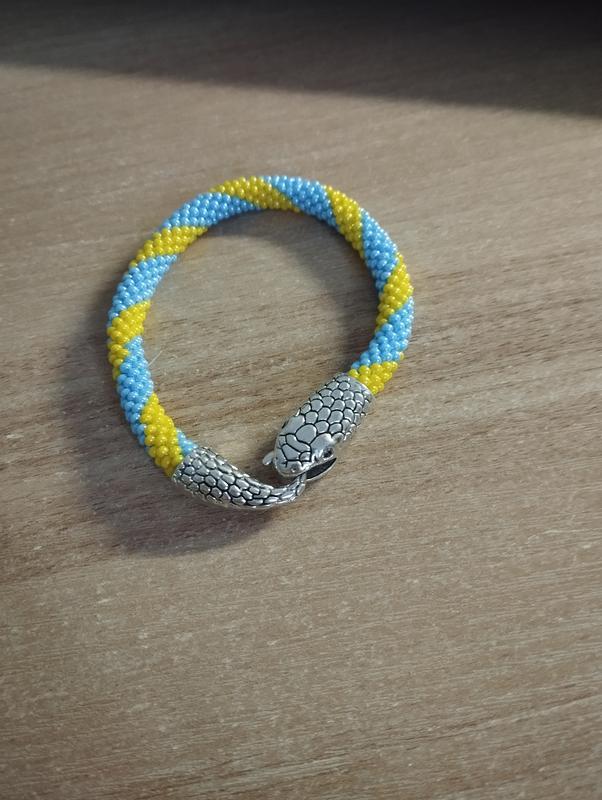 кольори жовтий та блакитний розмір ширина приблизно до 1 см в діаметрі довжина 14 см +2 см фурнітура під замовлення можна виготовити в будь-якому кольорі та розмірі