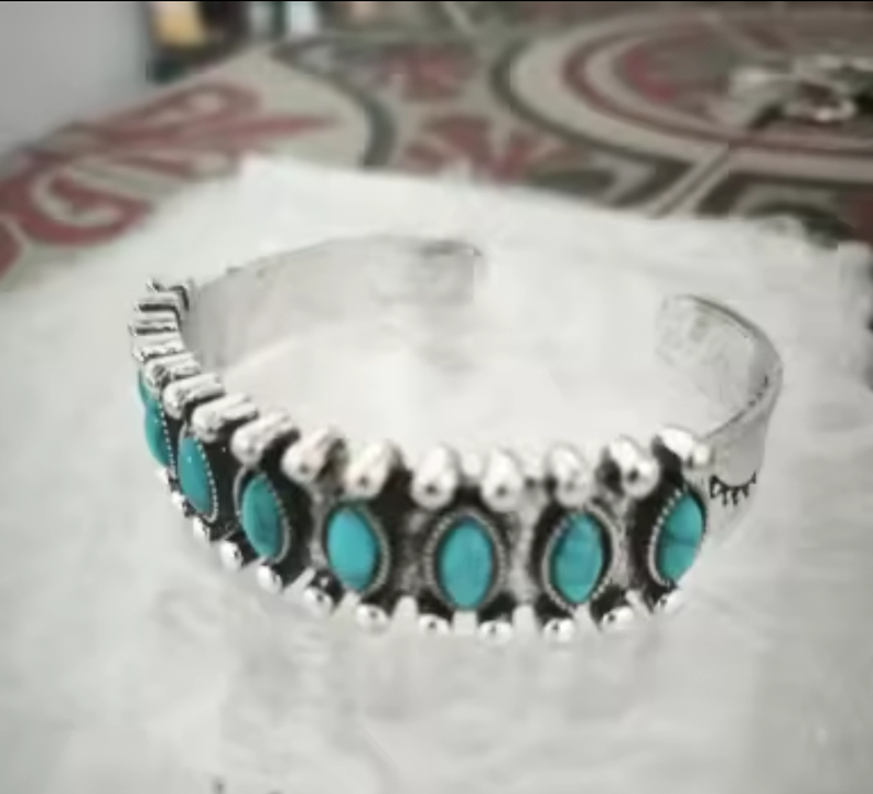 Стильний браслет для модниць в стилі Бохо, восточний, етно в срібному металі з бірюзовими вставками. Підійде на тонку ручку 14,15,16 см. Метал сам м'який, гарно Гнеться під Ваш розмір