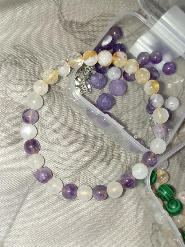 ✨ Браслет із цитрину, аметисту та місячного каменю ✨ Цей унікальний браслет поєднує в собі енергію трьох сильних мінералів: 🌞 Цитрин – камінь сонця та достатку, притягує успіх, фінансове благополуччя та заряджає життєвою енергією. 💜 Аметист – символ гармонії та спокою, допомагає зняти стрес, покращує інтуїцію та наповнює душу рівновагою. 🌙 Місячний камінь – камінь жіночності та ніжності, розкриває інтуїцію, приносить легкість у прийнятті рішень та гармонізує емоційний стан. Разом вони створюють ідеальний баланс – поєднання внутрішньої сили, спокою та гармонії з енергією процвітання й нових можливостей. Основні характеристики: Основа: еластична міцна нитка Особливості: аметист має глибокий фіолетовий відтінок з ніжними переливами, місячний камінь відрізняється чарівним перламутровим блиском, що змінюється при русі, а цитрин випромінює теплі жовто-золотисті переливи. Виготовляю за індивідуальним розміром для максимально комфортного носіння.