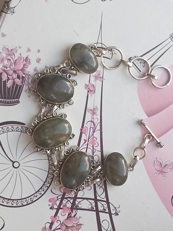 Новий браслет з натуральним лабрадоритом. Метал - ювелірний сплав на основі мельхіора. Ручна робота індійськіх майстрів. Застібка-тогл. Повна довжина 20 см. Чудова ірізація каменів.