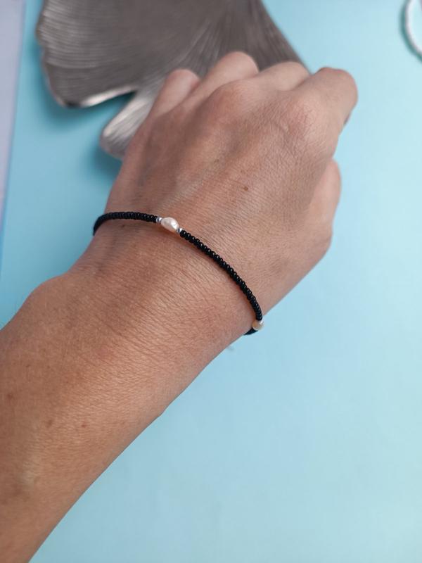 Чорний браслет з перлинами. Довжина регулюється.