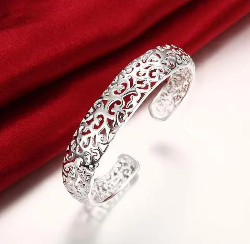 Красивий та ніжний браслет манжета з візерунком сріблястого кольору. Матеріал :метал, вкритий срібленням 925 проби Ширина 1,8 см Діаметр 6 см на 5 см (можна відрегулювати розмір) До замовлень на суму від 400 грн. Ви отримаєте додаткову прикрасу в подарунок🎁 Частину прибутків від продажів ми спрямовуємо на допомогу ЗСУ💛💙