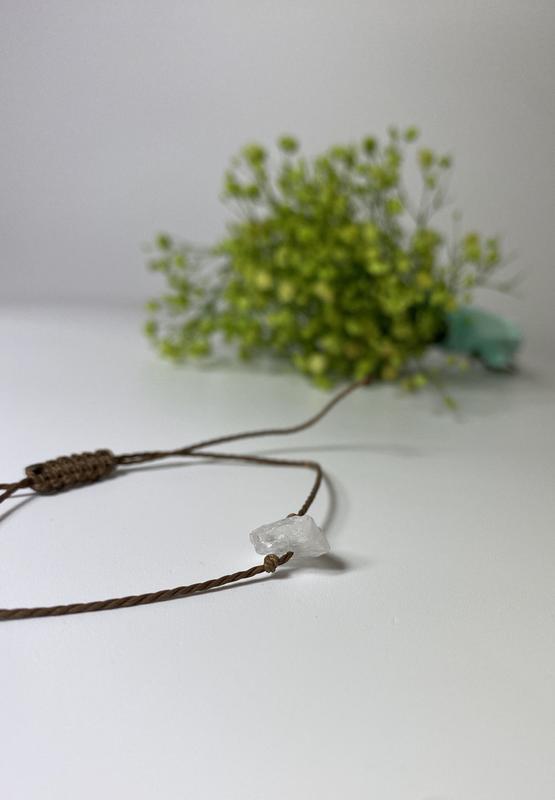 Браслет-ниточка з натуральним різним необробленим камінням 1 см, розмір регулюється до 30...