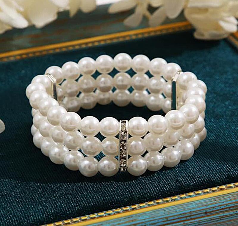 Браслет жіночий Стильний браслет з намистинами на руку Намистини браслета імітують перлинки Біжуретний сплав поєднуваних частин срібного кольору довжина браслета 19см діаметр намистини 0.9 см