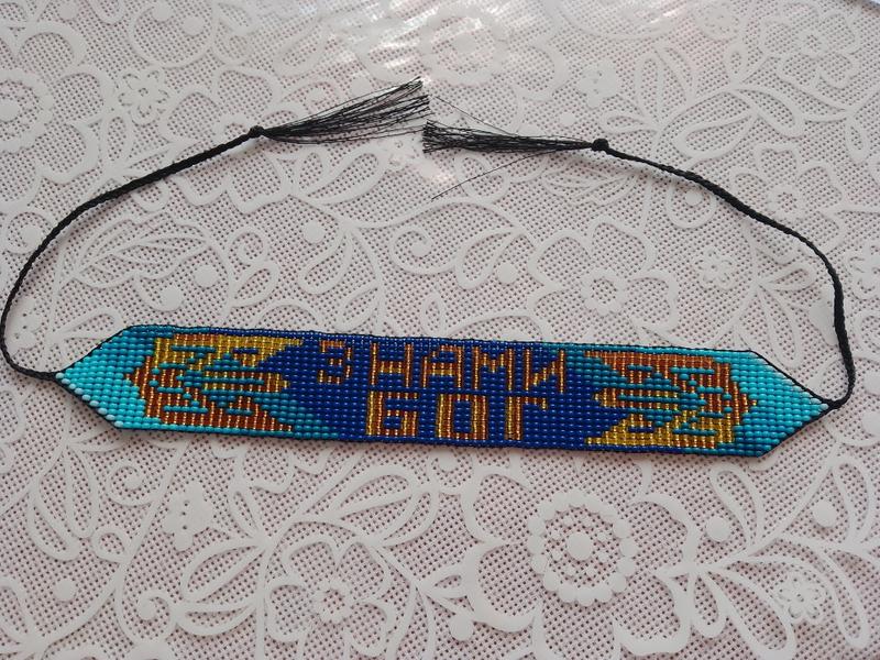 Браслет виготовлений з чеського бісеру. Застібка на зав'язки, перед відправкою можу додати ковзаючий вузол для швидкого і легкого одягання і знімання. По краях зміцнений подвійною ниткою, тому буде добре носитися не розтягуватися, не протиратися. Довжини браслету без застібки 20 см.+ зав'язки. Ширина браслету 2.8 см, 17 рядів бісеру. Браслет підійде для щоденного носіння, або як подарунок-оберіг.