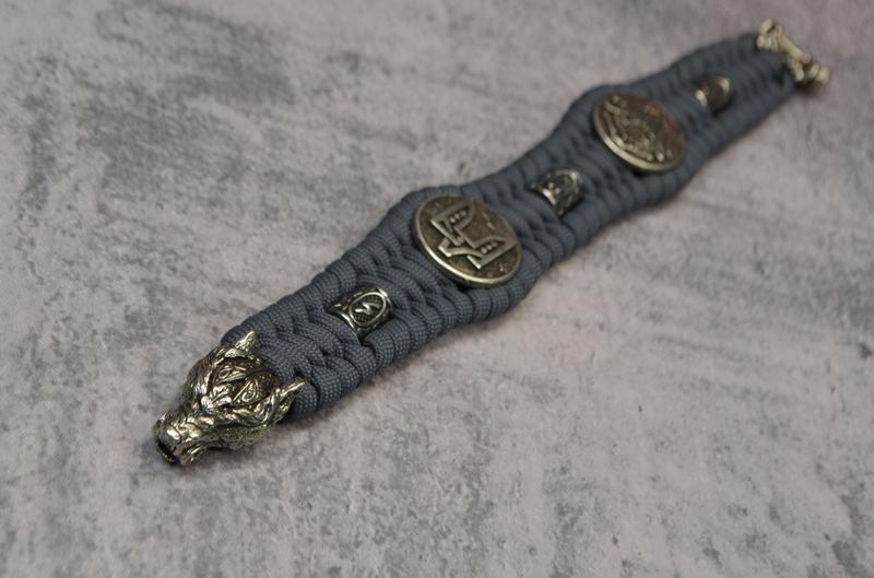 Браслет с двузубом, знаком ссо и рунами старшего футарка из мельхиора