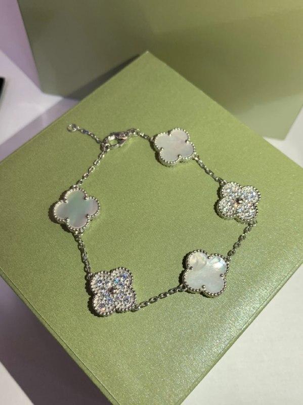 Браслет конюшини (стиль ван кліф) з цирконієм і білим перламутром