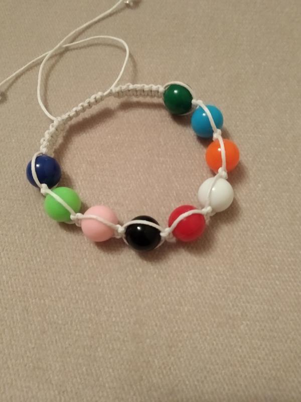Браслет Шамбала з різнокольорових намистин. Замок регулюється під зап'ястя.