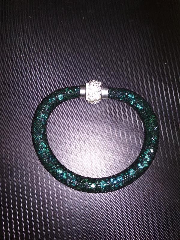 браслет смарагдового кольору з камінчиками застібається на магніті