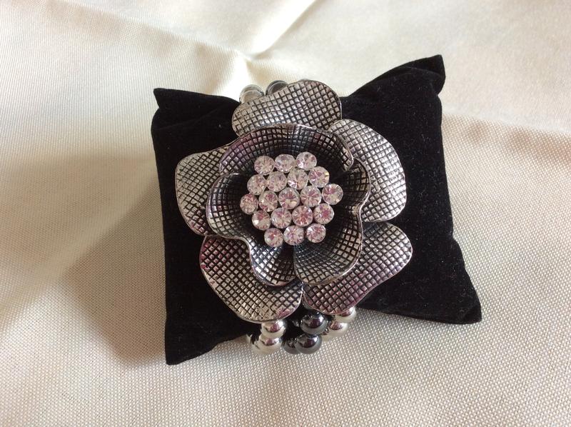 Браслет бижутерный сплав в серебряном тоне в виде цветка украшен кристаллами на резинке дл от 17см