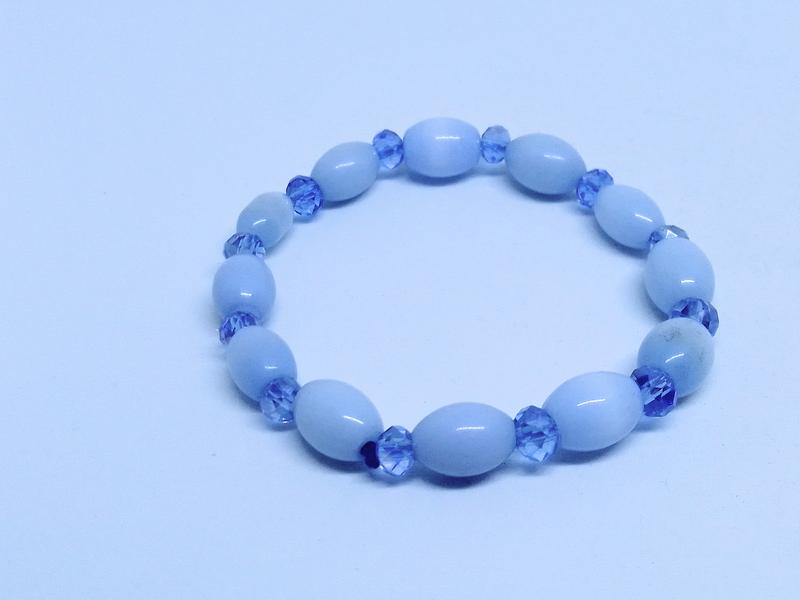 Браслет ручної роботи зі скляних намистин і кришталиків. Невеликого розміру. На силіконовому шнурі.