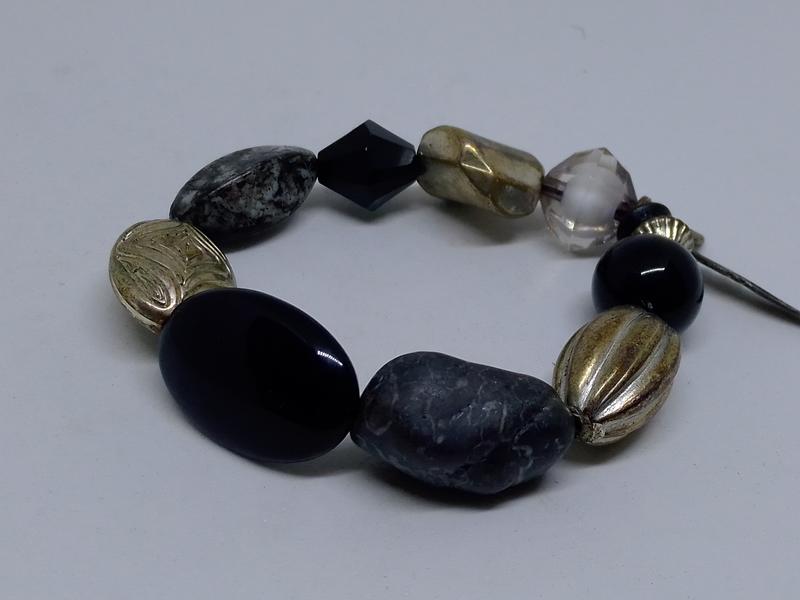 Браслет ручної роботи зі скляних намистин, натурального каменю, металу і акрилу. Суровенькие такі.