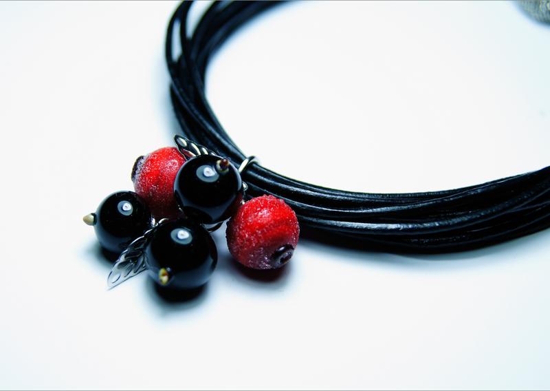 Браслет авторський "Шикарний" Застібка на магнітах. Намистинки ягідки - авторський лемпворк. Розмір ягід брусниці і смородини на 0,8 0,9 див. Браслет товстенький і масивний. Складається з 8 шнурочком діаметра 1,5 мм. В подарунок до виробу гарна упаковка.