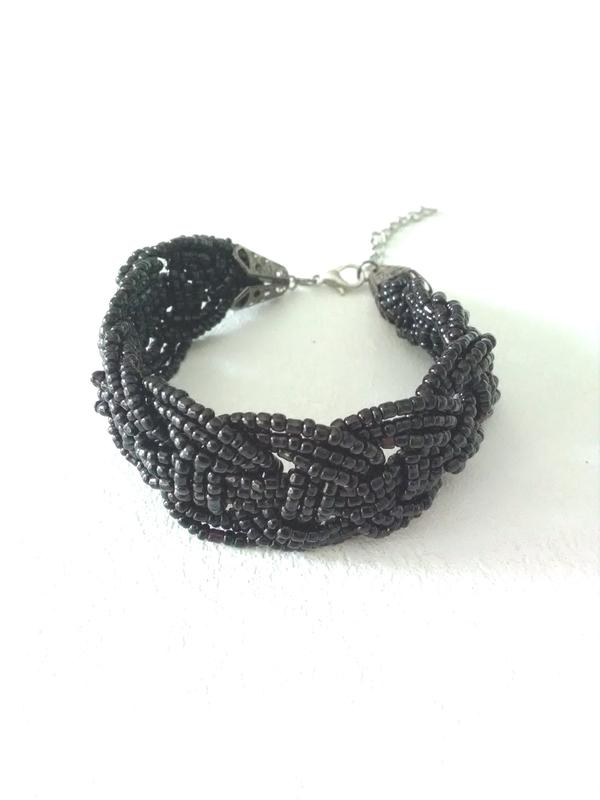 Браслет з чорного бісеру. Довжина 20 см + 4,5 см подовжуючий ланцюжок.