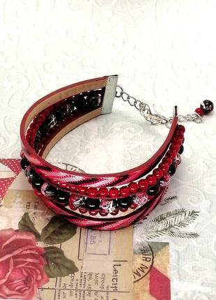 Браслет из кожных шнуров и стеклянных бусин.
