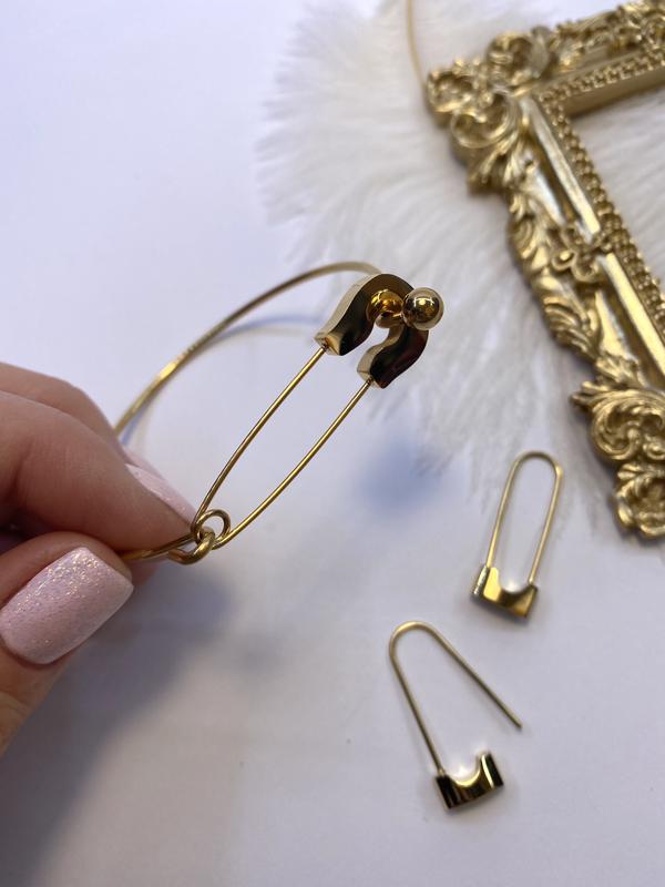 Оригінальний набір «шпилька». Браслет з шпилькою з нержавіючої сталі. Покриття 18к. Розмір 5,9*1,3 див. Милі сережки шпильки з нержавіючої сталі. Розмір 2,3*1 див.