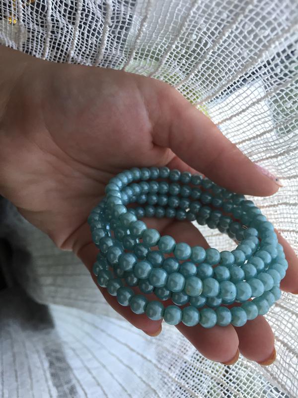 Браслет из бусин голубой на любую толщину запястья.Он на проволочке ,поэтому легко подойдет всем