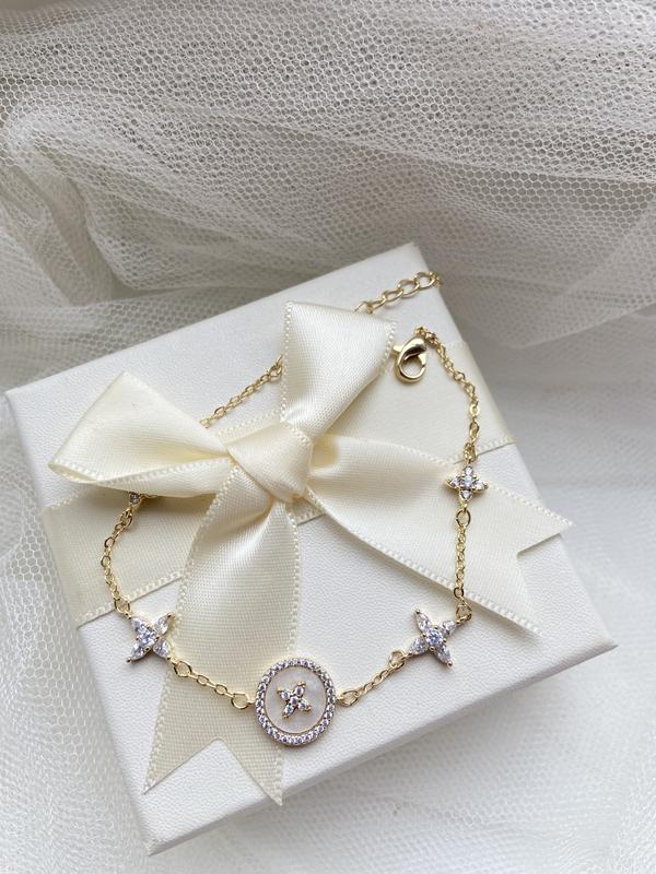 Ніжний браслетик в стилі LV! Розмір регулюється! Вставка перламутр і кубічний цирконій!