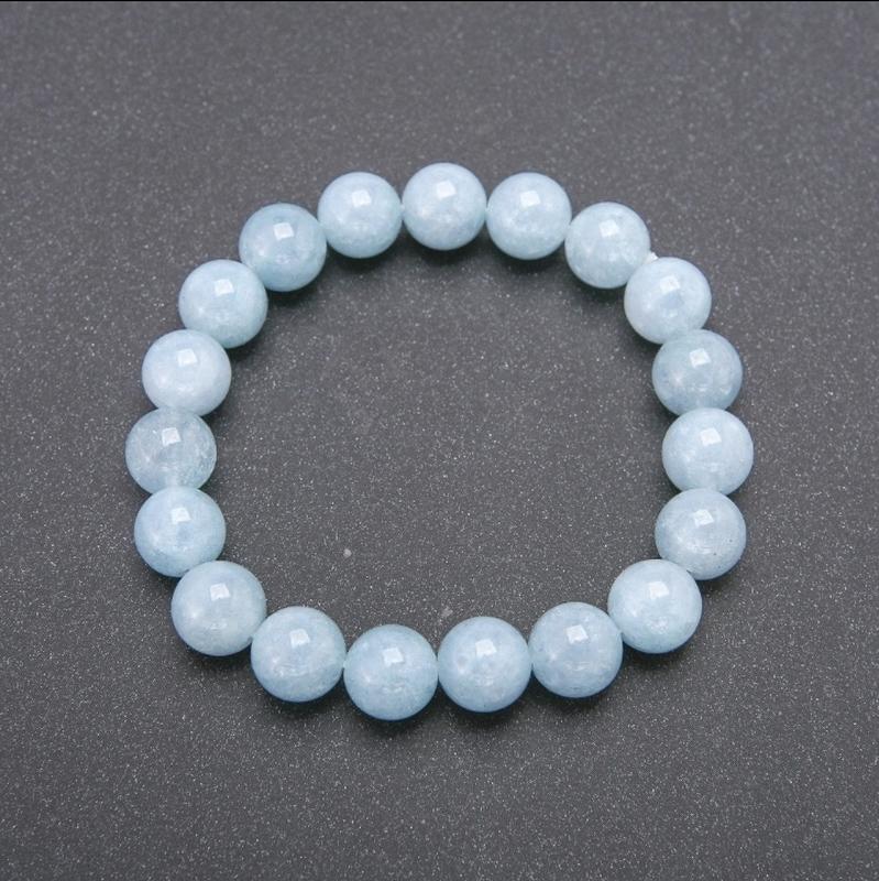 Браслет з натурального каменю Авамарин на резинці гладкий кулька d-10(+-)мм обхват 18см