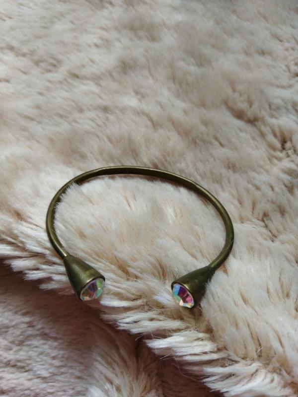 метал, латунь чи бронза - не перевіряла, з камінням а можливо і скло.