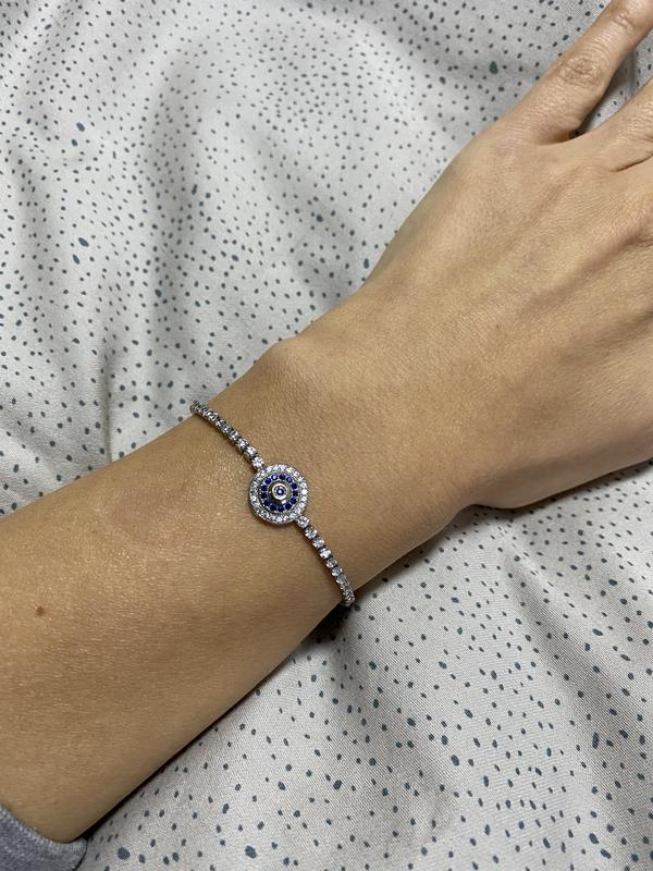 Дуже гарний браслет з камінчиками білого і синього кольору. Розмір універсальний. Всі камінці на місці. Не темніє.