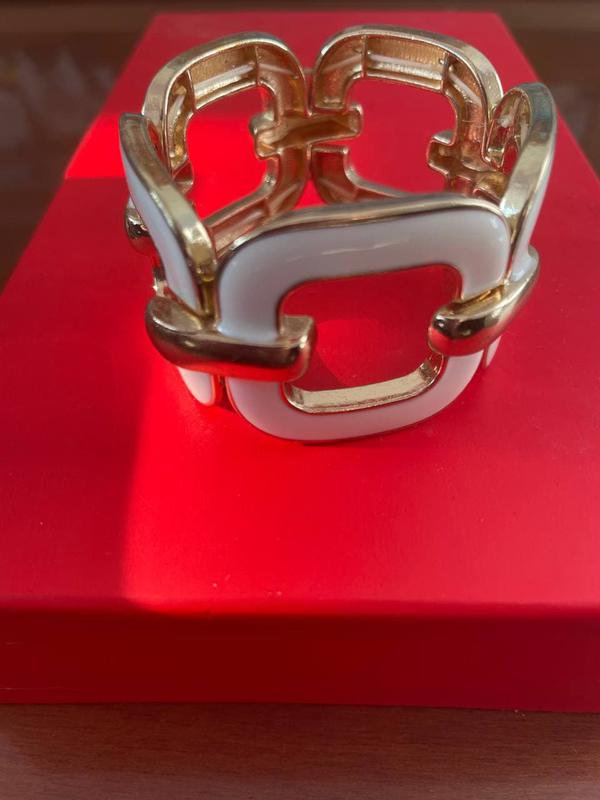 красивий білий браслет з золотом. На резинці, цікаво виглядає на руці. Великий