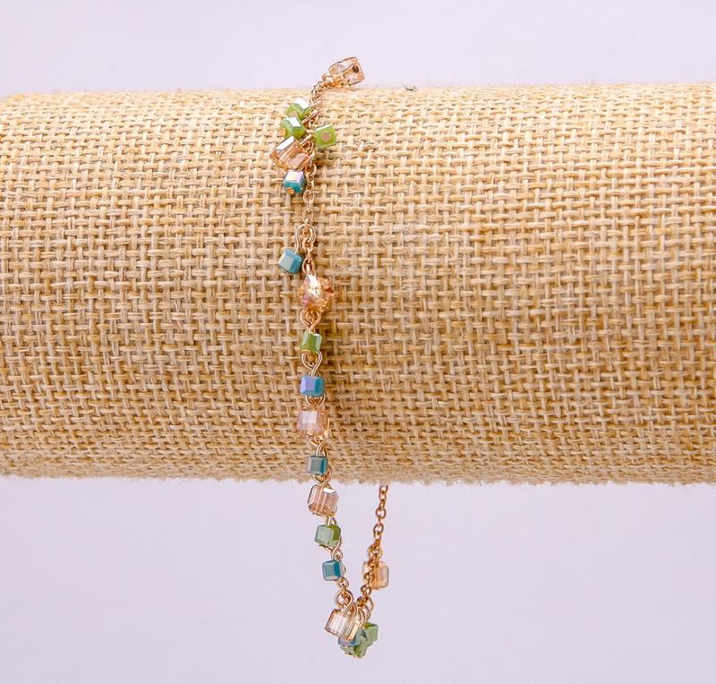 Браслет Xuping Позолота 18К с зелеными, прозрачными и голубыми подвесками (бензин) L-20см, s-1,7мм +