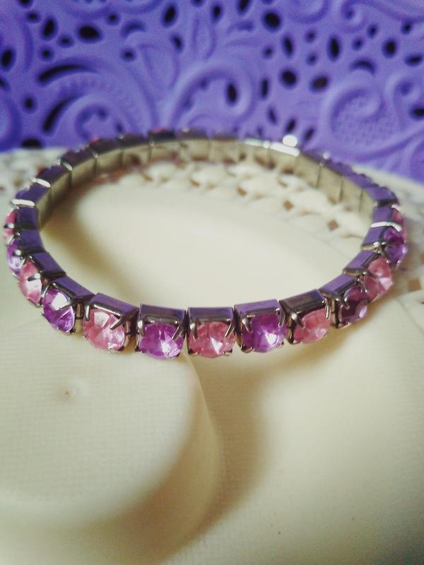 Ошатний браслетик з рожевих і бузкових каменів на гумці