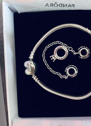 Браслет із застібкою у формі серця 2300 Намистина «Батьківщина назавжди» 1100 Намистина з монограмою Pandora 1100