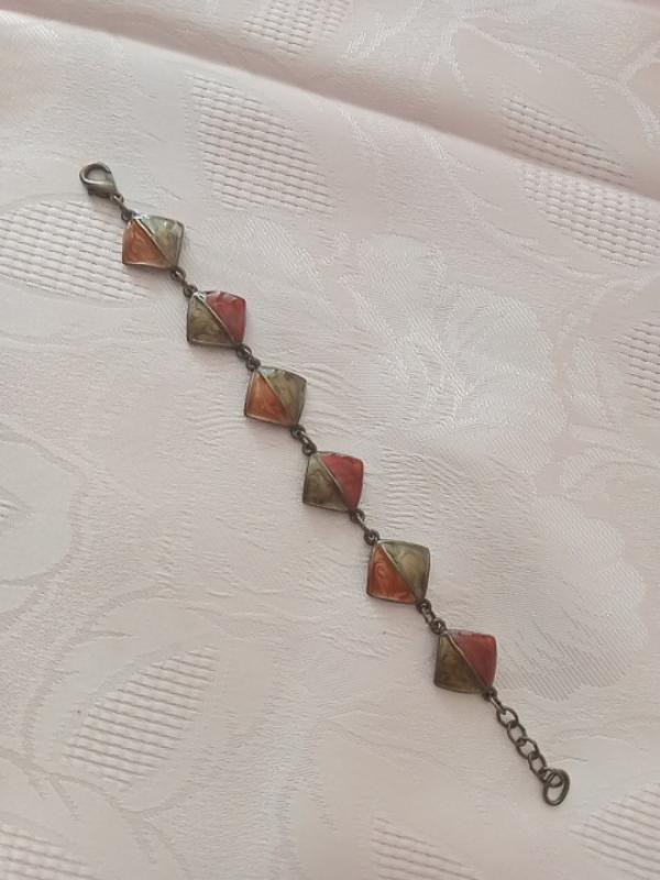 Браслет, довжина з подовжувачем 20 см, гарячі емалі теплих тонів. На мій погляд, дуже приємні кольори червоні, коричневі, помаранчеві, якісь осінні.Емаль високої якості.Браслетик супер!!!!