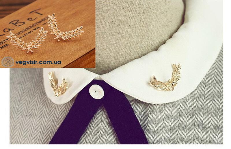 Шикарная брошь на воротник костюма рубашки в форме веточки лавр брошка с эмалью