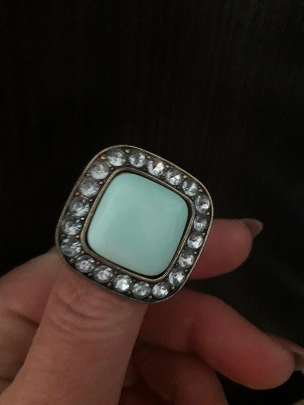 перстень з бірюзовим камінцем та стразами,розмір регулюється