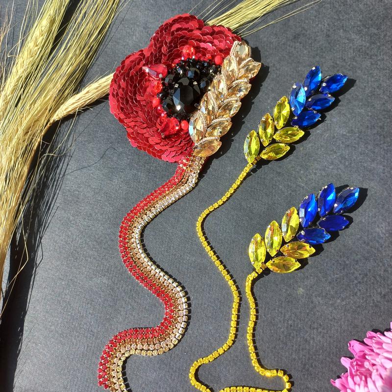 Продам брош у вигляді маку. Матеріали: чеський бісер, індійські лелітки, стразовий ланцюжок, японська фурнітура, вивовітня сторона натуральна шкіра, стрази. Розмір: висота 7,5 см. ширина 5,5-6,5 см