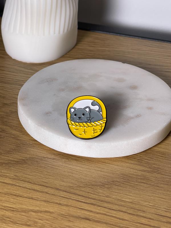 Пін значок металевий кіт в кошику