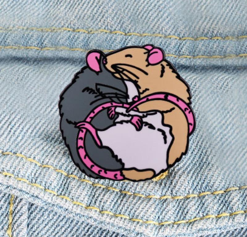 Брошка-кишеня значок пін щура миша метал супер сплять дві в обійми