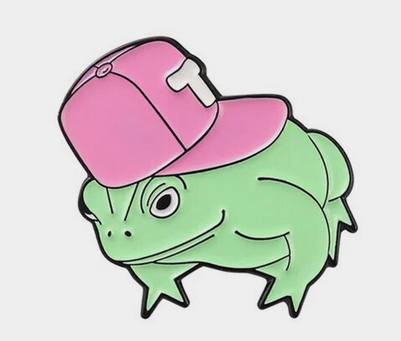 Брошка-кишеня значок пін метал зелений жаба в бейсболці репер