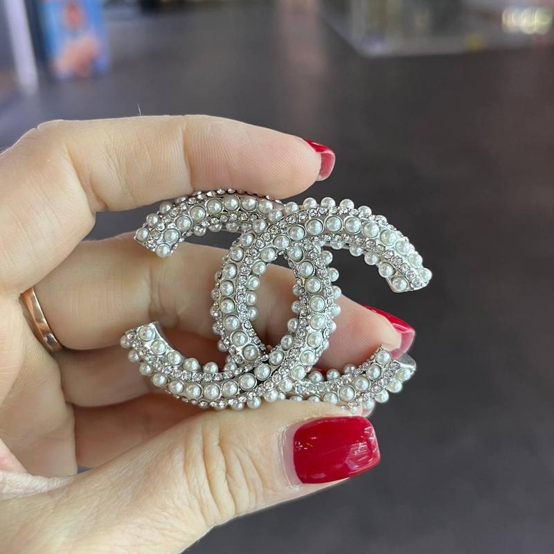 Брошка виготовлена в посрібленні як логотип Шанс, усипаний камінням і перлами Відео **********************************************************