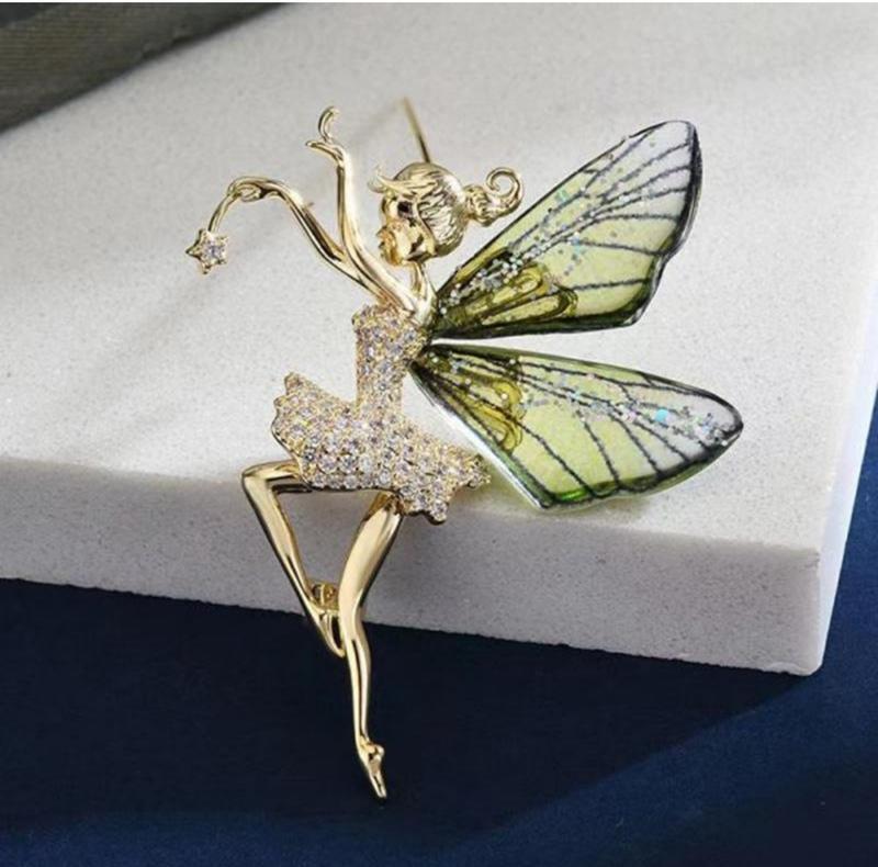 Зворушлива брошка у формі феї, оригінального та ніжного дизайну — чудова прикраса для створення привабливого та незабутнього образу! Брошка виготовлена з біжутерійного сплаву золотистого кольору та інкрустована кристалами, які дуже гарно мерехтять і приковують до себе захоплені погляди. Крила виготовлені з прозорого полімеру, що надає броші легкої повітряності та ніжності. Неймовірно красива брошка вразить Вас і закохає а себе з першого разу, нагадає безтурботність блакитного неба та тепло сонячних днів. Брошка прекрасно підійде як на подарунок, так і собі коханій