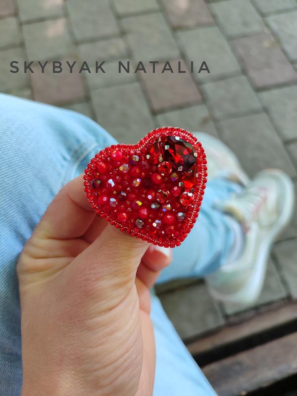 Брошка Серце -Розмір 4,5*4,5 см Фурнітура : -брошка. Брошка виконана з матеріалу: -стразова цепочка -камінці -бусини -бісер.