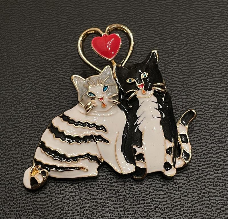 Цікава прикраса, брошка - котики. Метал - цинковий сплав; емаль. Розмір 3.8*4.2см Вага 11гр Застібка - міцна.